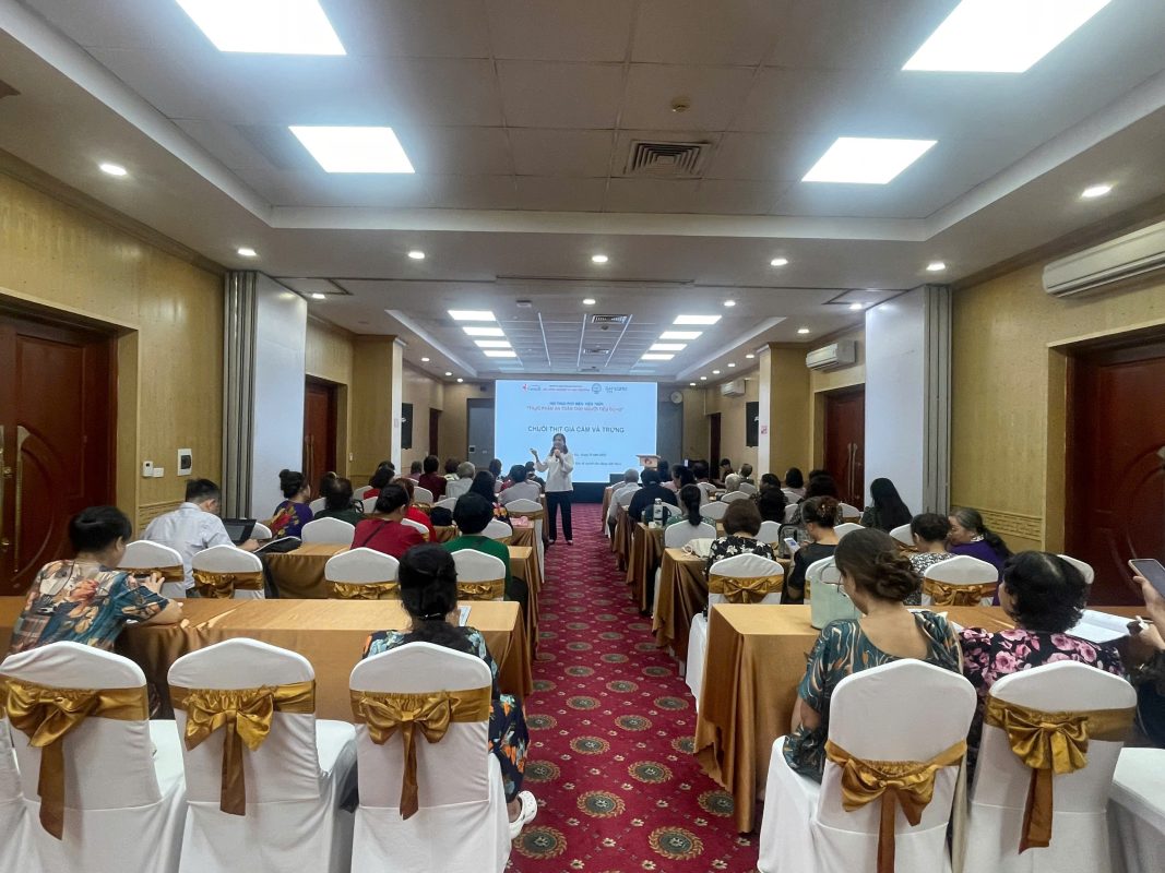 On an early autumn morning in Hanoi, the Sen Vang meeting room at the Women’s Development Support Center on Thuy Khue Street was filled with cheerful voices. More than 80 participants, mostly middle aged women, group leaders, and deputy leaders of the Thang Long Consumer Club, attended two training sessions organized by the Vietnam Consumer Protection Association (VICOPRO) under the SAFEGRO project.
