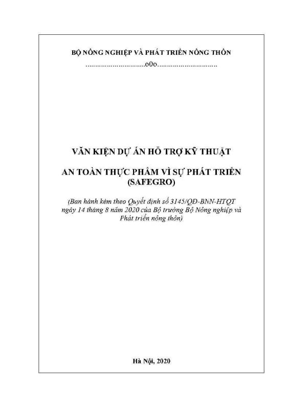 VĂN KIỆN DỰ ÁN HỖ TRỢ KỸ THUẬT AN TOÀN THỰC PHẨM VÌ SỰ PHÁT TRIỂN (SAFEGRO)